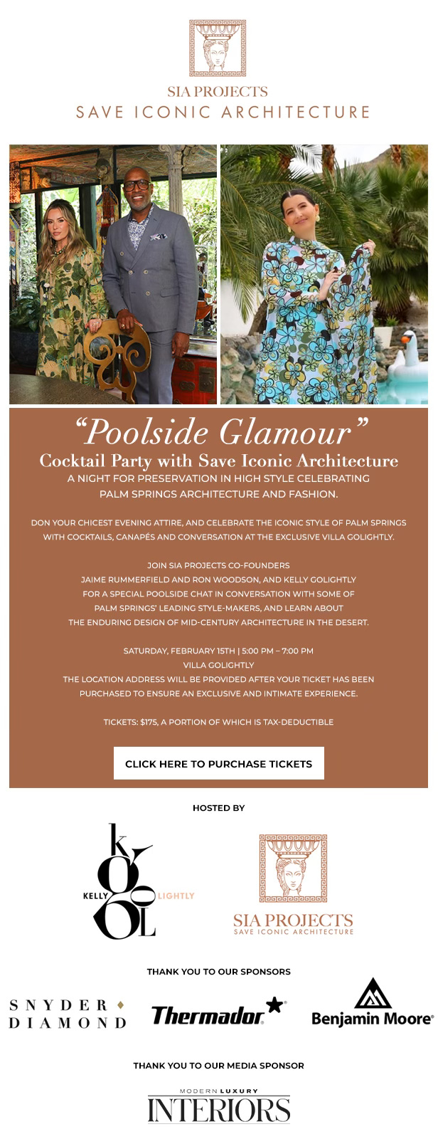 February 15 at the SIA Projects Poolside Glamour cocktail party at Villa Golightly. Note: the brand new Modern Luxury Interiors brand logo on the invitation below.